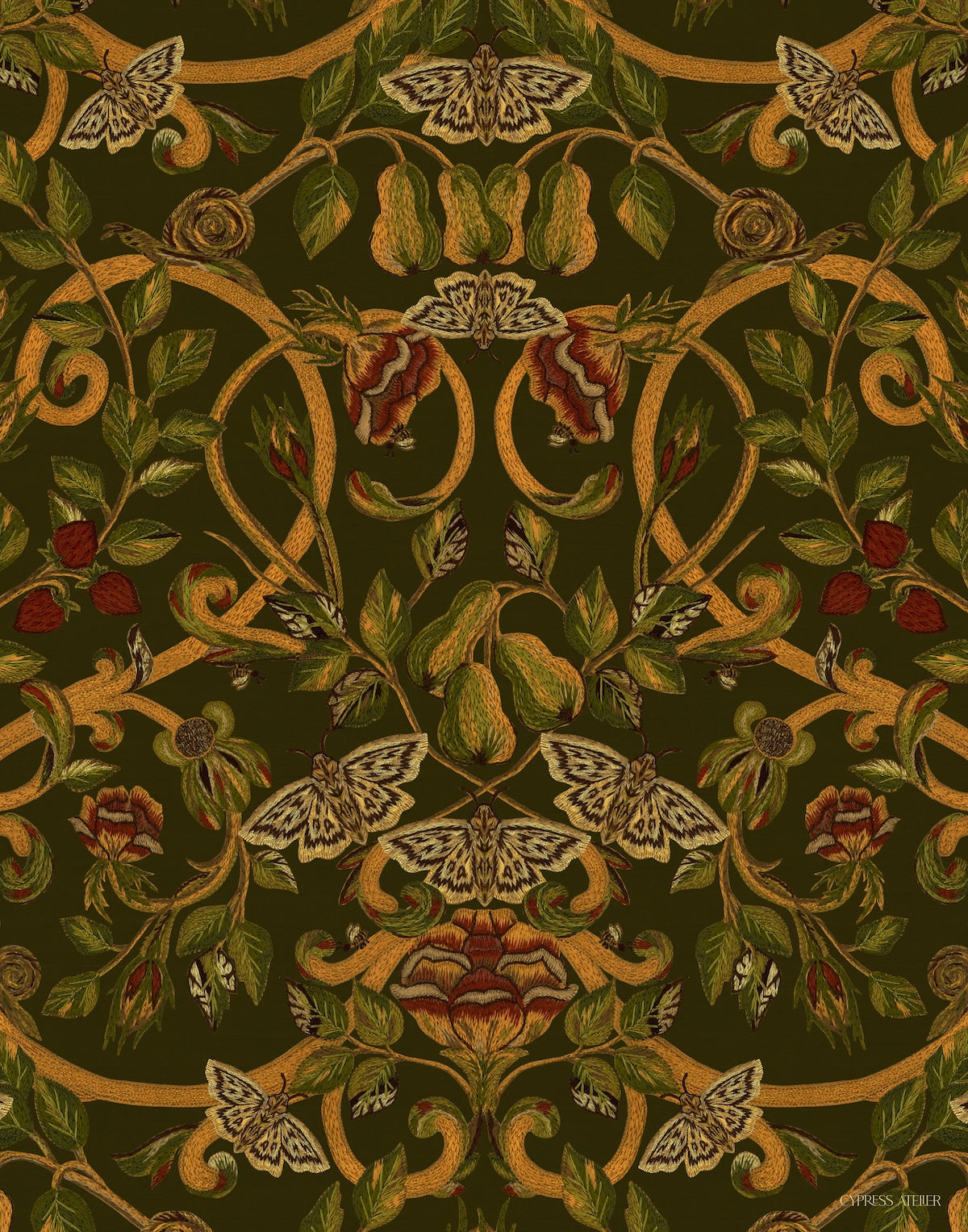 A small token of our wallpaper print Pollinator’s Botanique in colorway Night Moss.