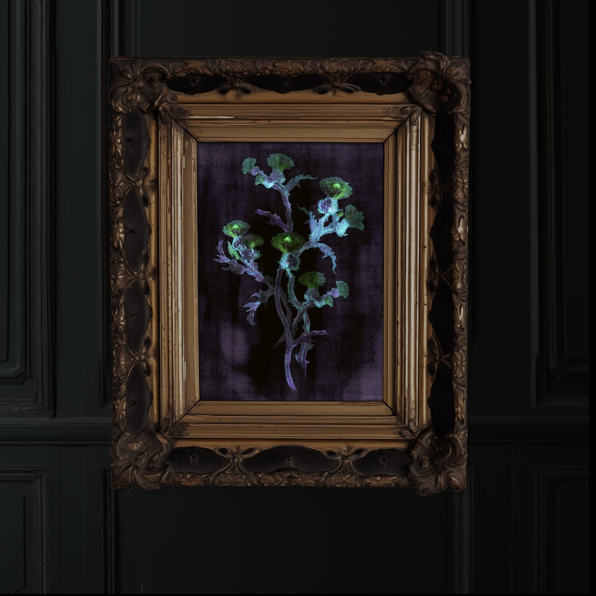 Illustrious within Scotland’s folklore, the thistle has become the country’s national flower, symbolizing the strength, resilience, and hardy nature of its people. In France and Romania, it is hung on doors as a good luck charm or to ward off evil spirits. Let the Luminous Thistle provide protection over your dwelling to purify energy for welcome futures.